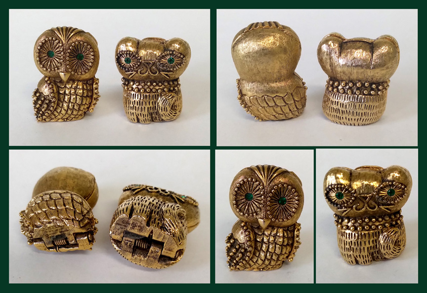 VANDA -- OWL PIN, PERFUME SOLID, c.1960s-1970s