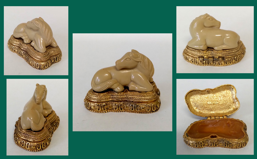 Condition: The horse is in perfect condition, clean, with no perfume staining from handling. The metal compact is in excellent condition, also. Click on gallery image to see additional photos.