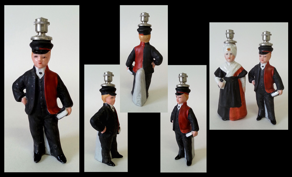 DUTCH ORPHAN SCHOOLBOY, PORCELAIN CROWN TOP PERFUME BOTTLE, c.Pre-1939