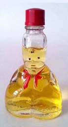 From Pauline's collection. This adorable crown-top perfume bottle was made in the Heinz factory in Germany. This is Otto, the patriarch of the "Heinz family." He has a top hat, a cane and a watch fob. These Heinz family crown tops all have unique, detailed, character faces -- no bland, generic faces in this family. Comical, mischievous and cute with their googly eyes, broad grins, chubby cheeks, round bodies and "fat pants", they are all adorable and collectible guys. Click on the gallery picture to see more pictures of Otto and a family photo of some of the other Heinz brothers. See more Heinz family members (P1642 and P1856).