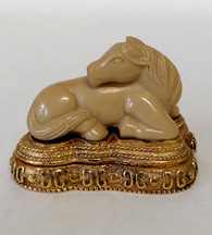 CORDAY, TOUJOURS MOI, TAN RECLINING HORSE, SOLID PERFUME COMPACT, c.1960s