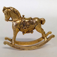 This is another of the creative 1970s perfume solid compacts from Max Factor. This charming child's rocking horse is filled with Factor's popular Hypnotique solid perfume. Lots of detail. The pommel on the saddle provides access to the hidden spring loaded perfume compartment in the horse's body.