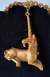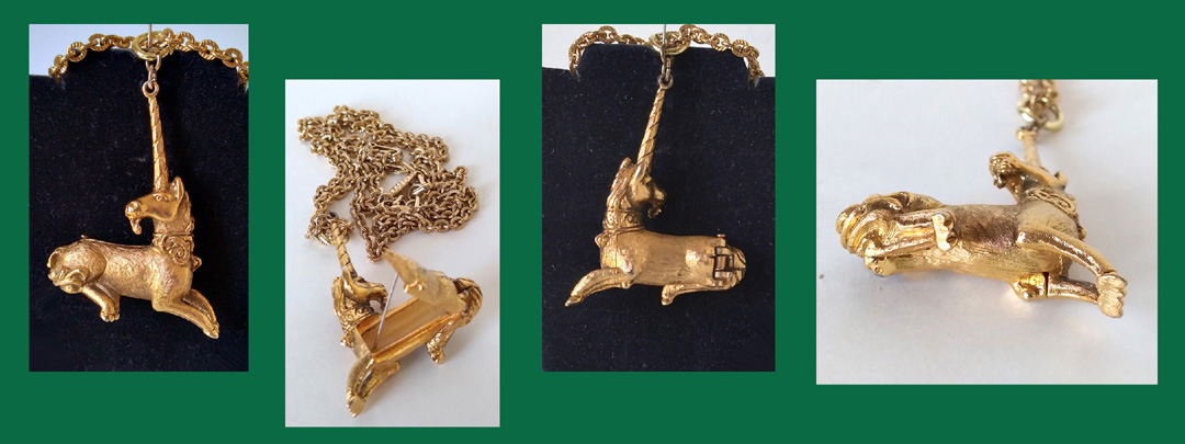 RARE CORDAY, TOUJOUR MOI, UNICORN, SOLID PERFUME JEWELRY, NECKLACE, c.1960s