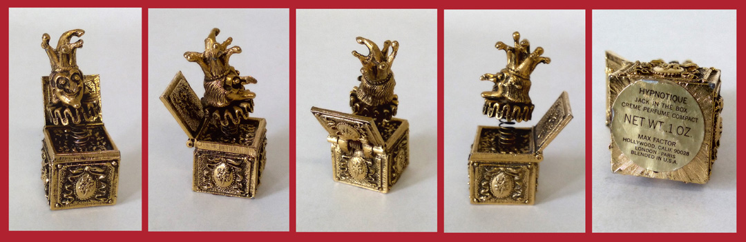 FACTOR, HYPNOTIQUE, JACK-IN-THE-BOX, VINTAGE SOLID PERFUME COMPACT, c.1960s